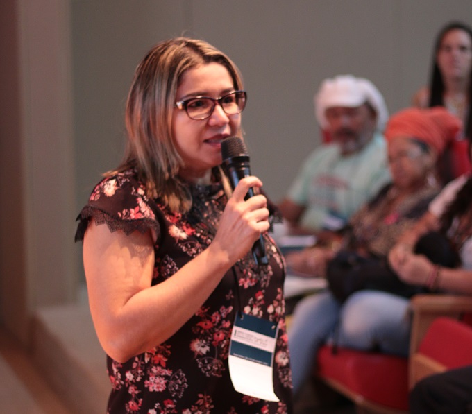 "Não importa qual o tempo vivemos, se na pós-modernidade, se em tempos líquidos. O fundamental é trazermos a discussão dos direitos humanos para o âmbito da sociedade", destacou Ilma Ferreira de Brito, diretora pedagógica da Emeron, ao representar o diretor da Escola, desembargador Paulo Mori.