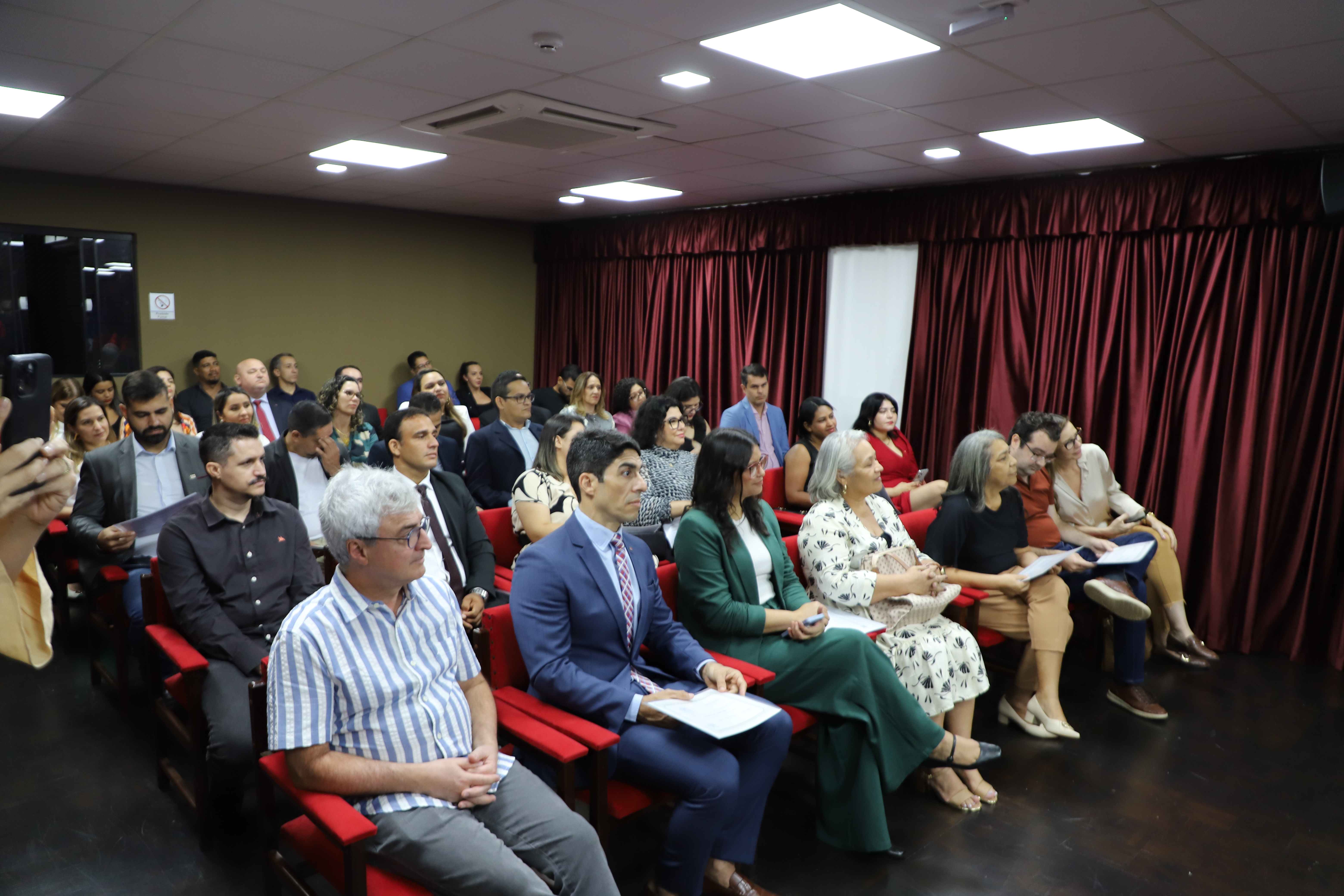 Os alunos(as) presentes na cerimônia de encerramento foram recebidos pelo Diretor da Emeron, o Presidente do TJRO e o Presidente da OAB/RO e depois foram chamados um a um, para receber o certificado de conclusão da formação.