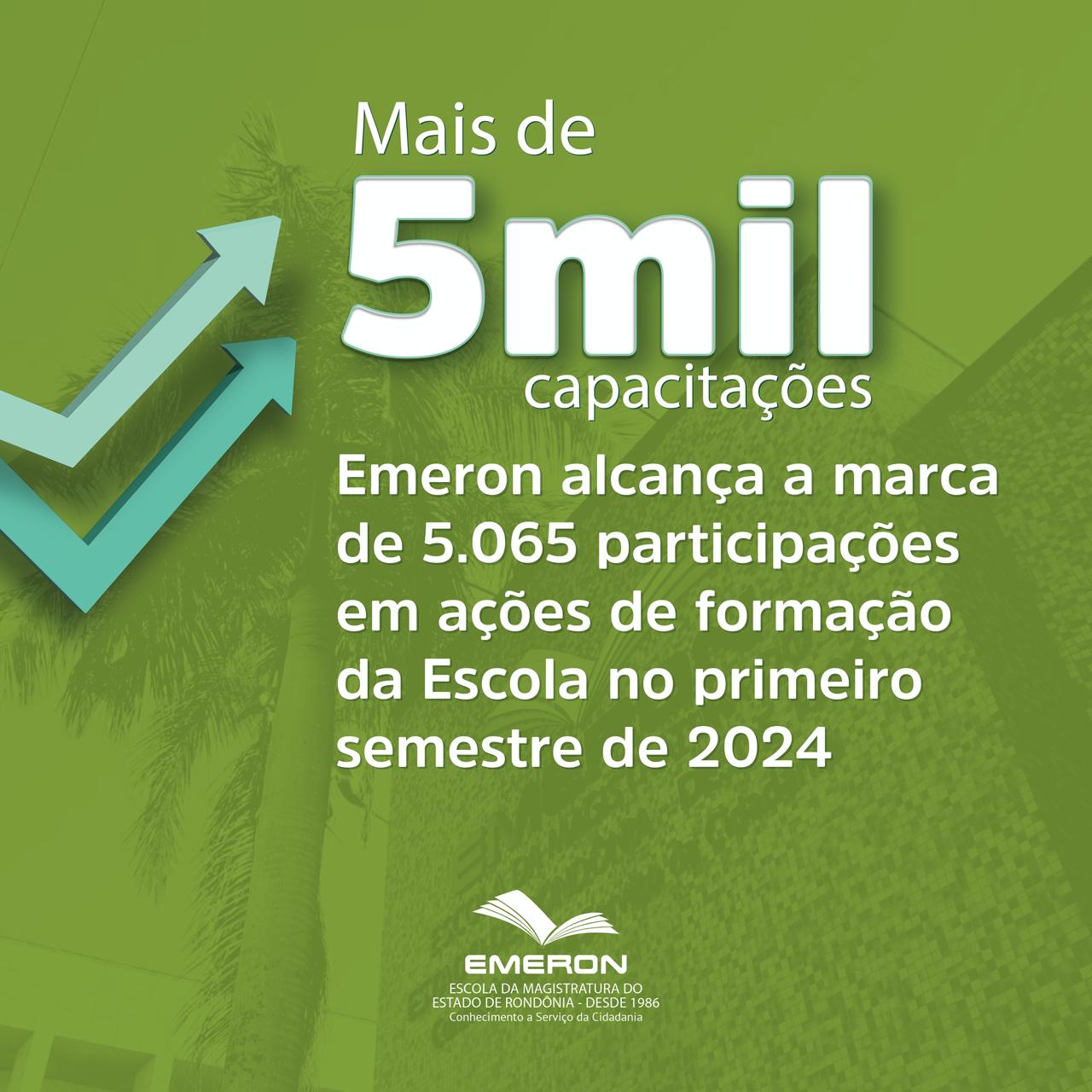 A Escola da Magistratura do Estado de Rondônia (Emeron) registrou mais de 5 mil participações em 164 atividades desenvolvidas no primeiro semestre de 2024. Os dados foram consolidados por meio do sistema próprio de gestão pedagógica e administrativa da Escola, o EmeronWeb.