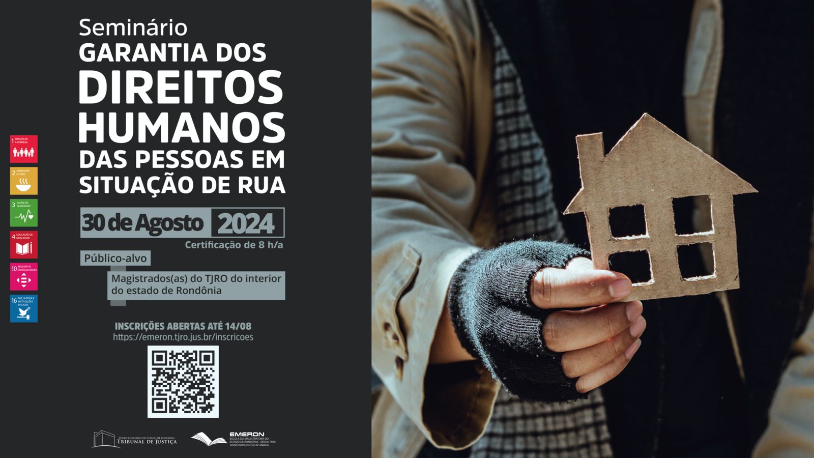 Estão abertas as inscrições do Seminário “Garantias dos Direitos Humanos das Pessoas em Situação de Rua”, para o público em geral, promovido pela Escola da Magistratura de Rondônia (Emeron). O evento acontecerá no dia 30 de agosto, às 8h, no auditório do edifício-sede do Tribunal de Justiça de Rondônia (TJRO).