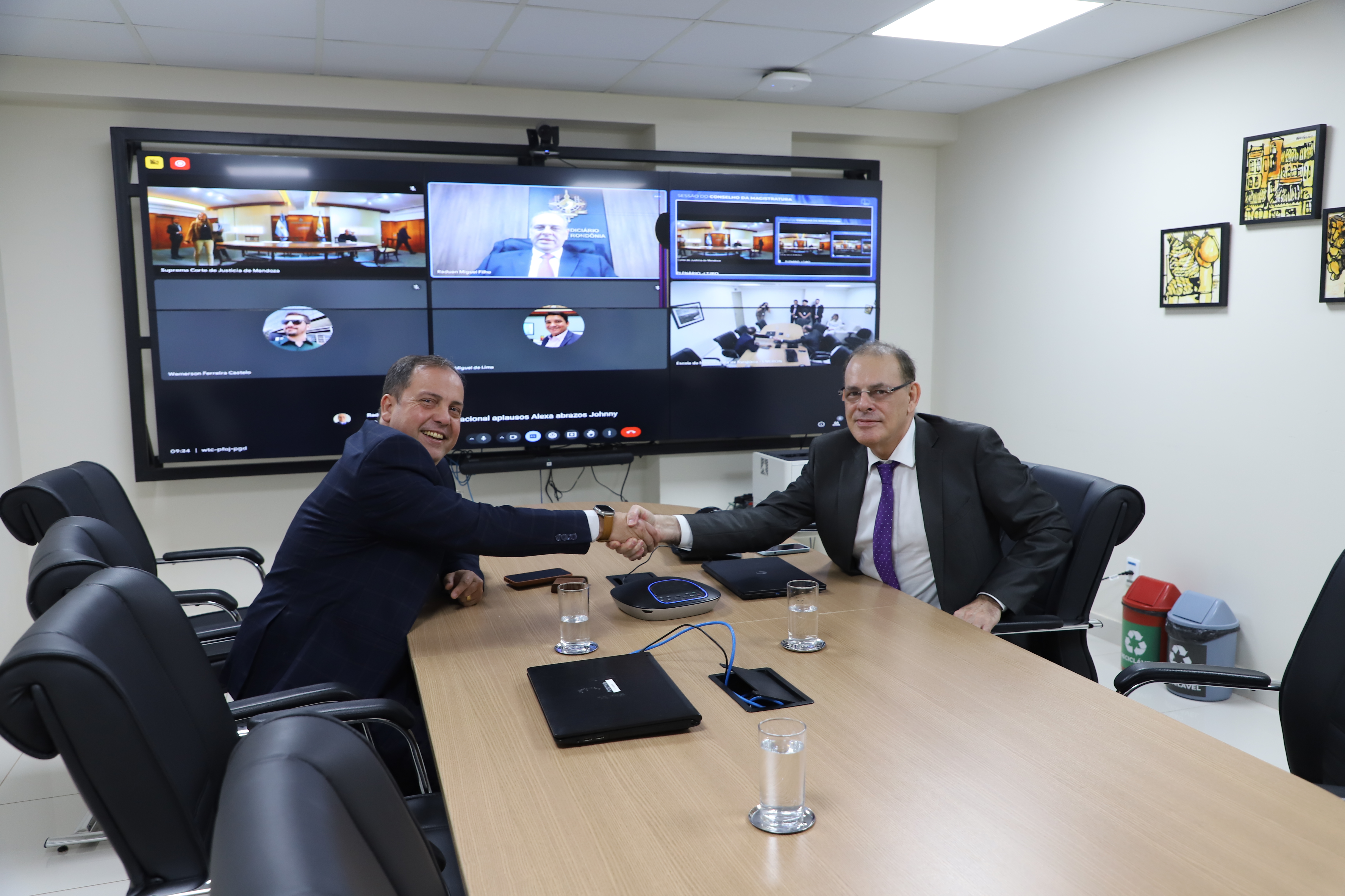 “Estarmos fazendo esta reunião para podermos firmar este acordo de cooperação com a Justiça de Mendoza é para nós um prazer imenso”, afirmou o Presidente do TJRO durante a sessão do Conselho da Magistratura. Ao mencionar todos os demais desembargadores presentes, Raduan Miguel anunciou: “Para nós então repito, é uma honra imensa estarmos hoje nesta sessão, que faço questão de proclamá-la solene para que seja firmado esse acordo de cooperação com a Corte Superior de Mendoza. Tenho certeza que isso é semente que estamos semeando em um solo muito fértil para a cooperação entre os magistrados e entre o Direito dos Juizados Especiais e de causas de menor complexidade, obrigado pelo carinho e pelo convênio”.