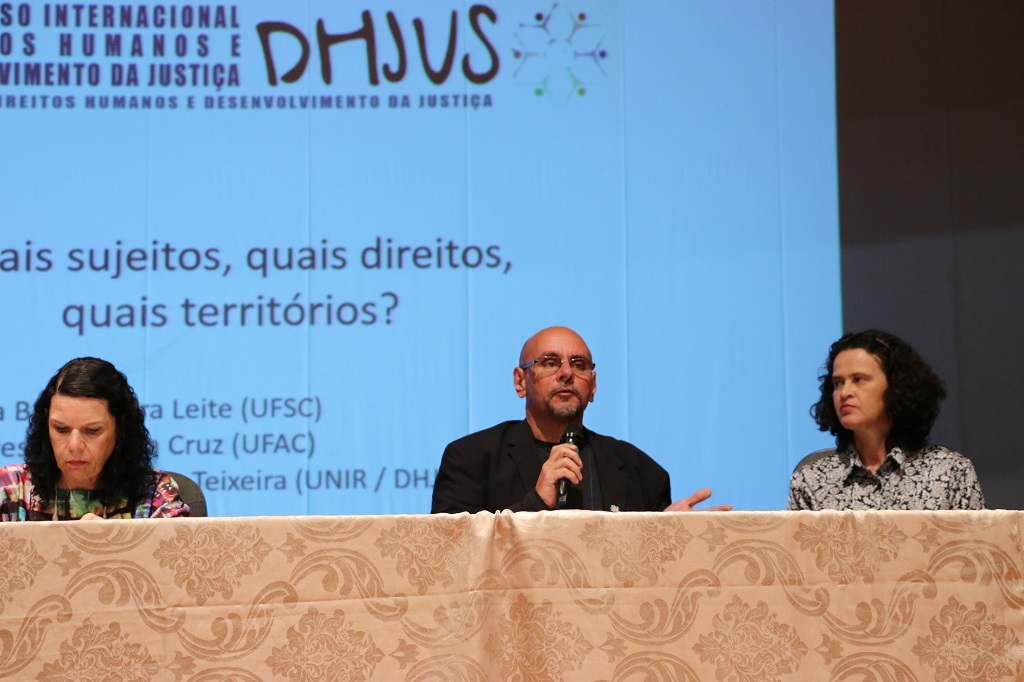 Na última noite de debates no I Congresso Internacional de Direitos Humanos e Desenvolvimento da Justiça, evento de extensão do Programa de Mestrado DHJUS, promovido pela Escola da Magistratura de Rondônia (Emeron/TJRO) e Universidade Federal de Rondônia (Unir), entre 16 e 20 de outubro, o tema foi “Quais sujeitos, quais direitos, quais territórios?”, com a participação das professoras doutoras Ilka Boaventura Leite, da Universidade Federal de Santa Catarina e Teresa Almeida Cruz, da Universidade Federal do Acre. O debate no teatro Guaporé foi mediado pelo professor Marco Teixeira, da Universidade Federal de Rondônia.