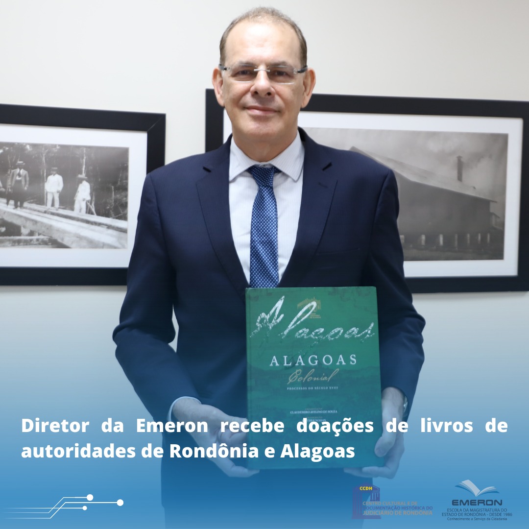 O Centro Cultural e de Documentação Histórica (CCDH) do Judiciário de Rondônia, vinculado à Escola da Magistratura do Estado (Emeron), recebeu na última semana a doação de uma obra do Centro de Cultura e Memória do Poder Judiciário de Alagoas (CCMTJAL). O Diretor da Emeron, desembargador Alexandre Miguel, também ganhou de procurador do estado de Rondônia um exemplar de manual sobre o estatuto dos servidores públicos.