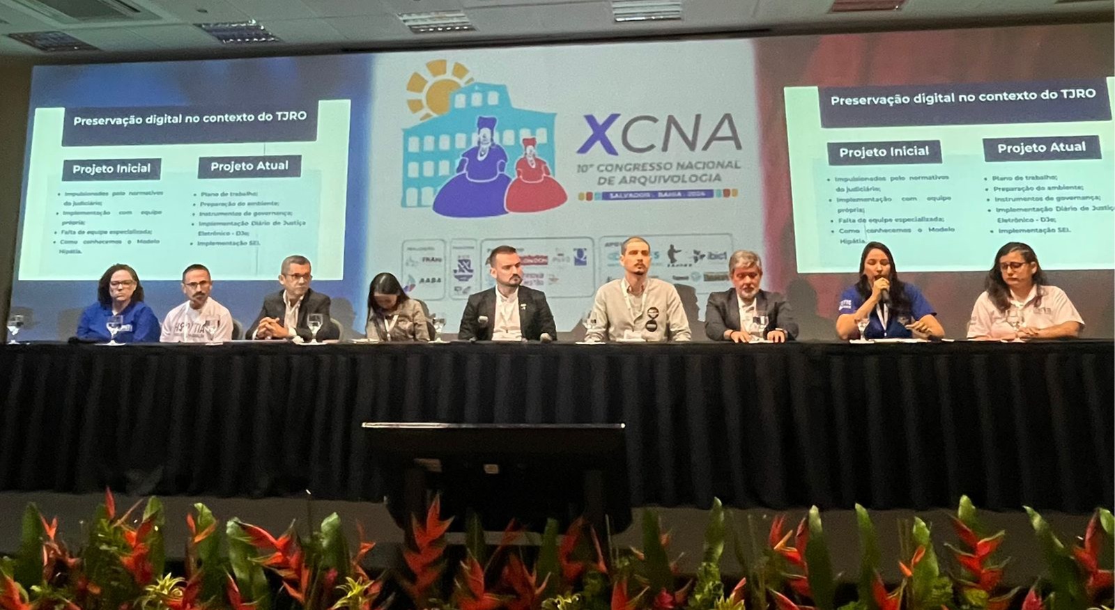 O Tribunal de Justiça de Rondônia participa essa semana do X Congresso Nacional de Arquivologia, que acontece em Salvador, na Bahia. Com o tema “A Arquivologia e as Tecnologias Disruptivas: O Arquivista na Era da Ciência de Dados e da Inteligência Artificial”, o congresso busca discutir as adequações das práticas profissionais dos arquivistas e as soluções tecnológicas que otimizam os serviços arquivísticos sem ameaçar os princípios da Arquivologia. Durante o evento, foram apresentados estudos sobre preservação digital do Diário da Justiça Eletrônico e do SEI do TJRO, e preliminares para implementação do modelo de preservação Hipátia.
