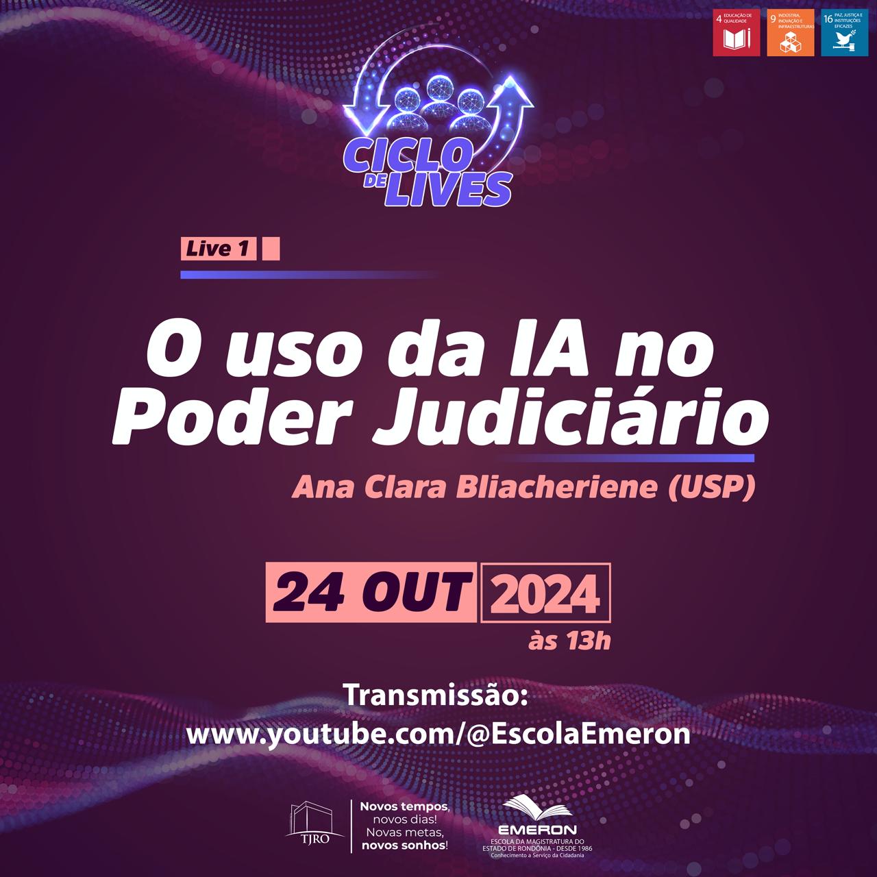 A Escola da Magistratura de Rondônia (Emeron) inicia nesta quinta-feira, 24 de outubro, o ciclo de lives “O uso da IA no Poder Judiciário” para formação básica de nivelamento do público interno no Tribunal de Justiça de Rondônia (TJRO) em inteligência artificial. As lives serão realizadas às terças e quintas-feiras até o início de dezembro.