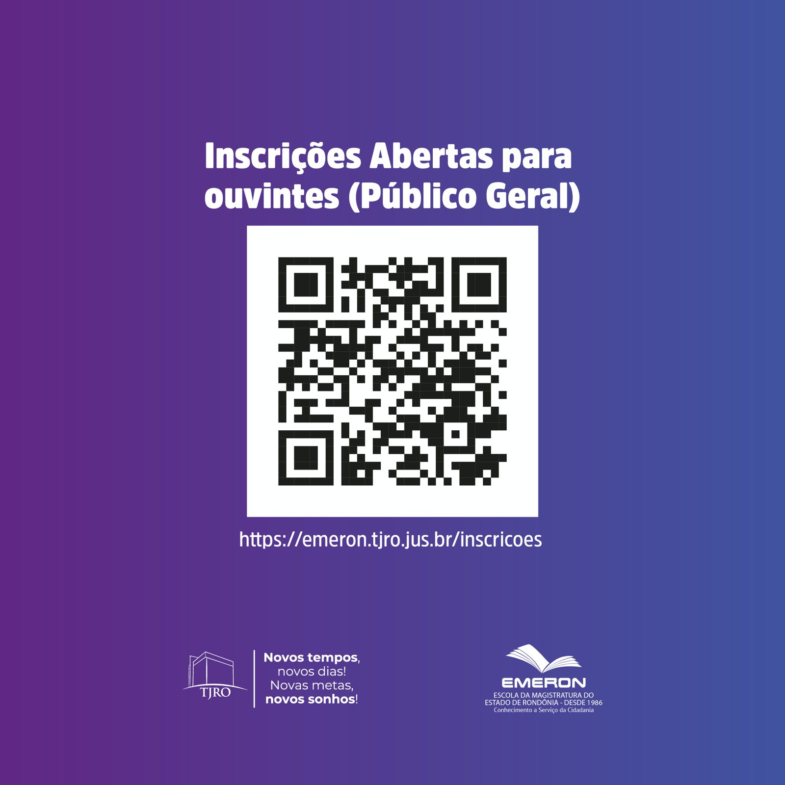 Os interessados(as) em submeter trabalhos para apresentação têm o prazo até 16 de novembro às 23h59, para análise e seleção. O envio deve ser feito apenas pelo link disponibilizado na página de inscrições do site da Emeron (emeron.tjro.jus.br/inscricoes).