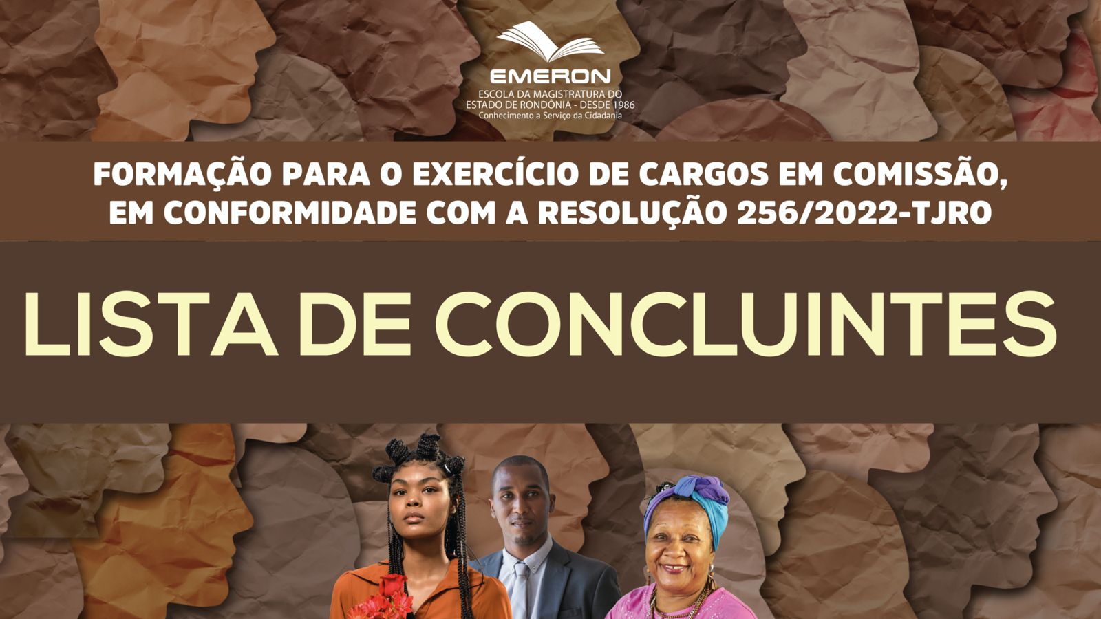 A Escola da Magistratura de Rondônia (Emeron) divulga a lista de concluintes da Formação para o exercício dos cargos em comissão para atendimento à Resolução 256/2022-TJRO, realizada entre os dias 1º de outubro de 10 de novembro, com carga horária de 25 horas-aula.