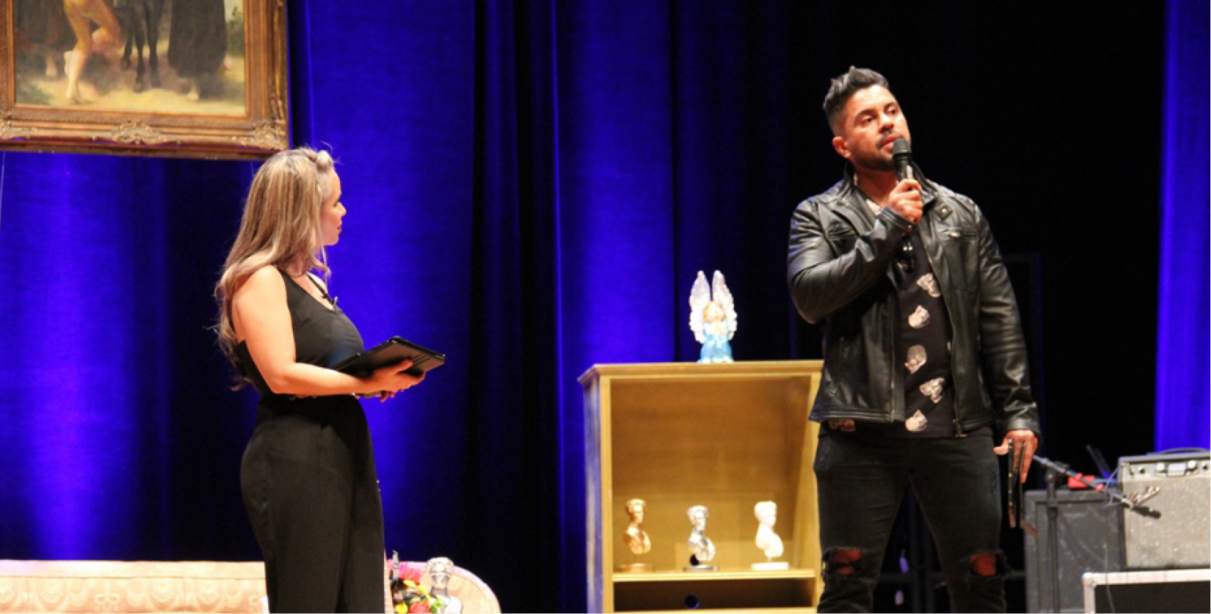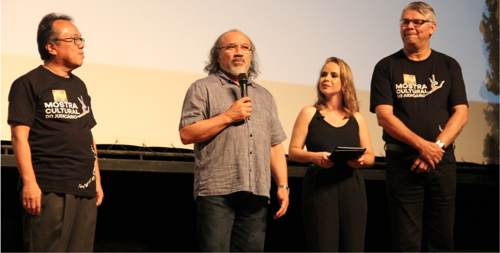 Os mestres de cerimônia, o magistrado João Valério e a servidora Fabiana, introduzem as atrações da noite. A primeira delas sai direto da tela. Representando a sétima arte na Mostra o curta metragem "Verdadeiro Amor", trabalho em equipe da 2ª Vara Cível da comarca de Ji-Paraná, da qual faz parte a magistrada Ana Valéria Ziparro e os servidores.