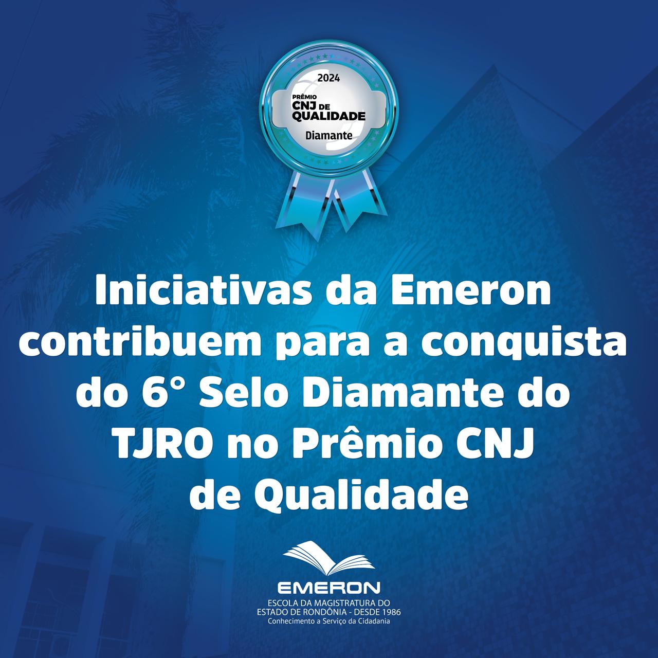 A Escola da Magistratura do Estado de Rondônia (Emeron), integrante da estrutura do Tribunal de Justiça de Rondônia, é parte da conquista do 6º Selo Diamante do TJRO no Prêmio CNJ de Qualidade, promovido pelo Conselho Nacional de Justiça (CNJ). O reconhecimento, que celebra a excelência e a inovação no Judiciário brasileiro, reforça o compromisso da Escola com a formação continuada de magistrados(as) e servidores(as) do Judiciário Rondoniense.