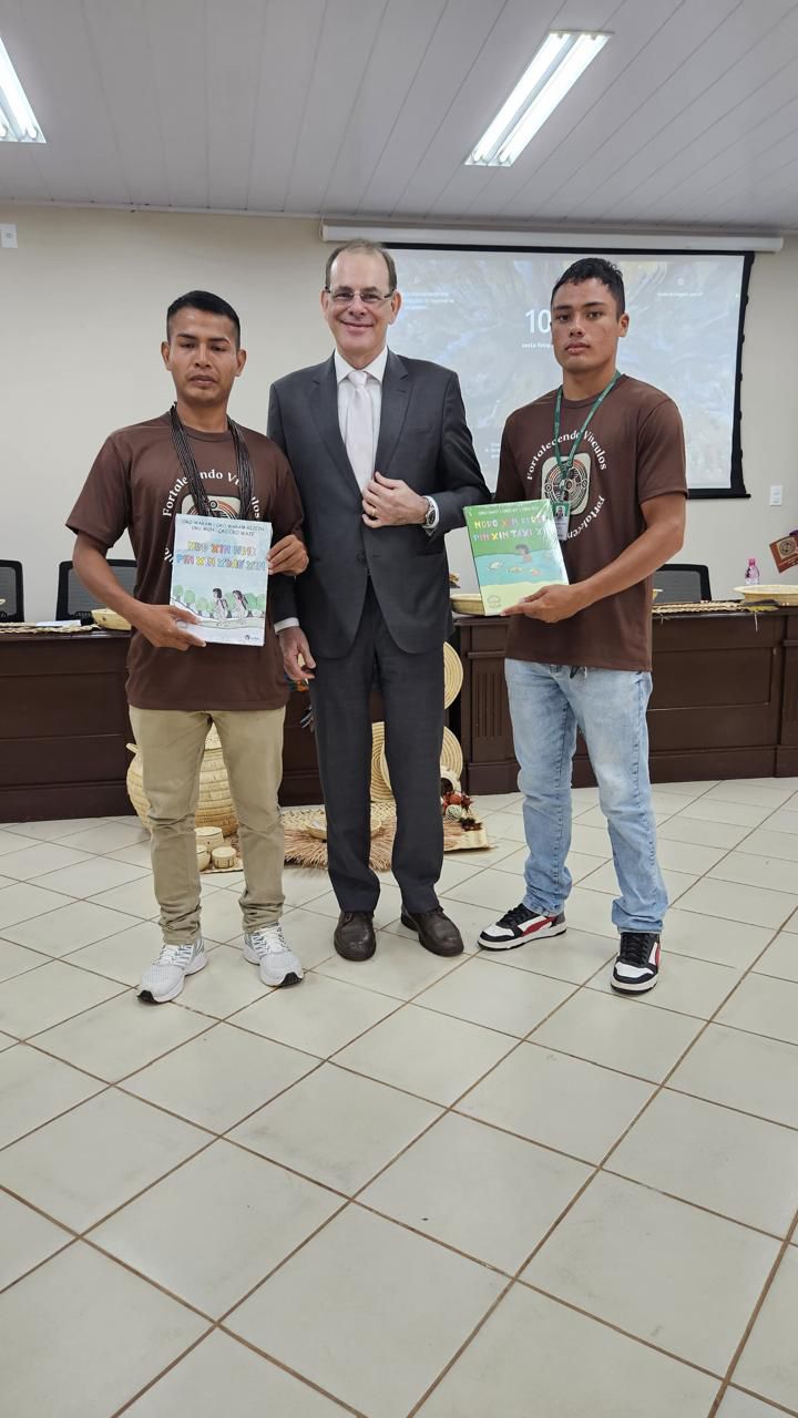 Os livros “NRO XIN HRIK PIN XIN XRAO’ XIN” e “NORO XIN KEREK PIN XIN TAXI’ XIN” foram entregues ao Diretor, desembargador Alexandre Miguel, durante o lançamento do projeto "Fortalecendo Vínculos", realizado no Fórum de Guajará. A iniciativa busca promover a reintegração de adolescentes indígenas em conflito com as leis, por meio de intervenções psicossociais que valorizam a identidade cultural e promovem a reintegração social.