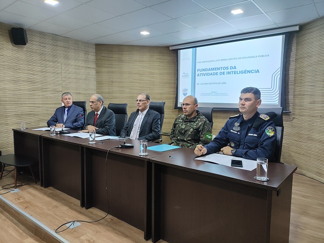 Nesta quinta-feira, 6 de fevereiro, o auditório da Escola da Magistratura do Estado de Rondônia (Emeron) sediou o Painel Internacional sobre Segurança Pública na Amazônia, parte da disciplina Fundamentos da Atividade de Inteligência do curso de pós-graduação lato sensu em Gestão em Segurança Pública. O evento reuniu autoridades, especialistas e acadêmicos para discutir a aplicação de princípios de inteligência estratégica e policial no contexto da segurança pública na Amazônia brasileira, com foco na integração entre as problemáticas nacional e internacional relacionadas ao crime organizado na região.