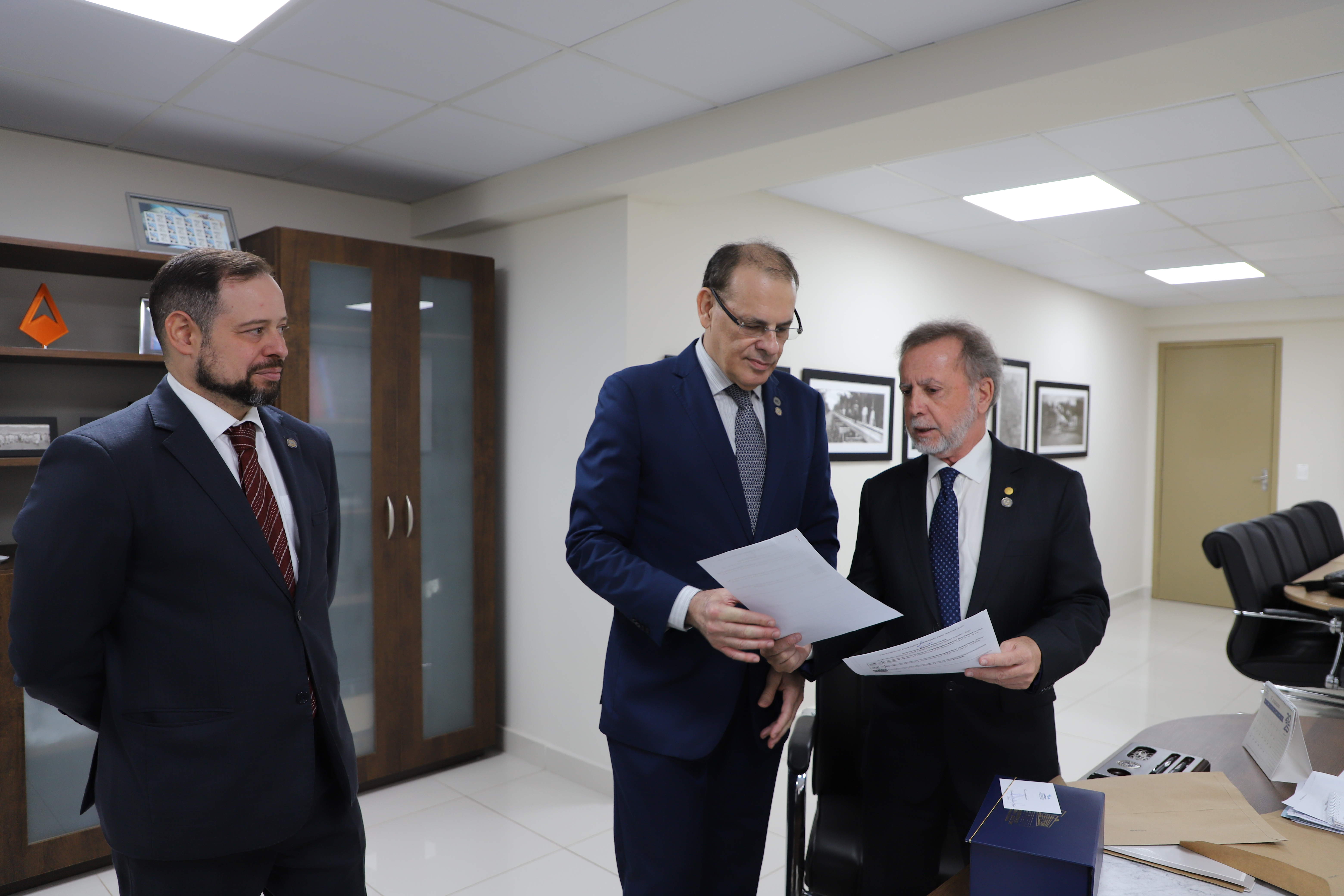Os magistrados do TJMG foram recebidos pelo secretário-geral da Emeron, José Miguel de Lima, pelo Vice-diretor, juiz Johnny Gustavo Clemes, e pelo Diretor, desembargador Alexandre Miguel.