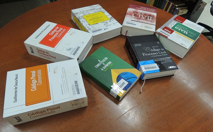 Os livros recebidos tratam de temas relacionados ao direito e à administração pública. O TCE doou cinco coletâneas de manuais e informativos sobre assuntos afetos a eficiência na gestão pública, a exemplo dos Manuais do Gestor Público, de Consultas Normativas do TCE (2002 a 2016) e de Auditoria Financeira. Já os recebimentos advindos do STF são da área jurídica, como Códigos Civil, de Processo Civil e Penal comentados. Todas as edições são recentes, de 2016, e já se encontram a disposição dos usuários para estudo e empréstimo.