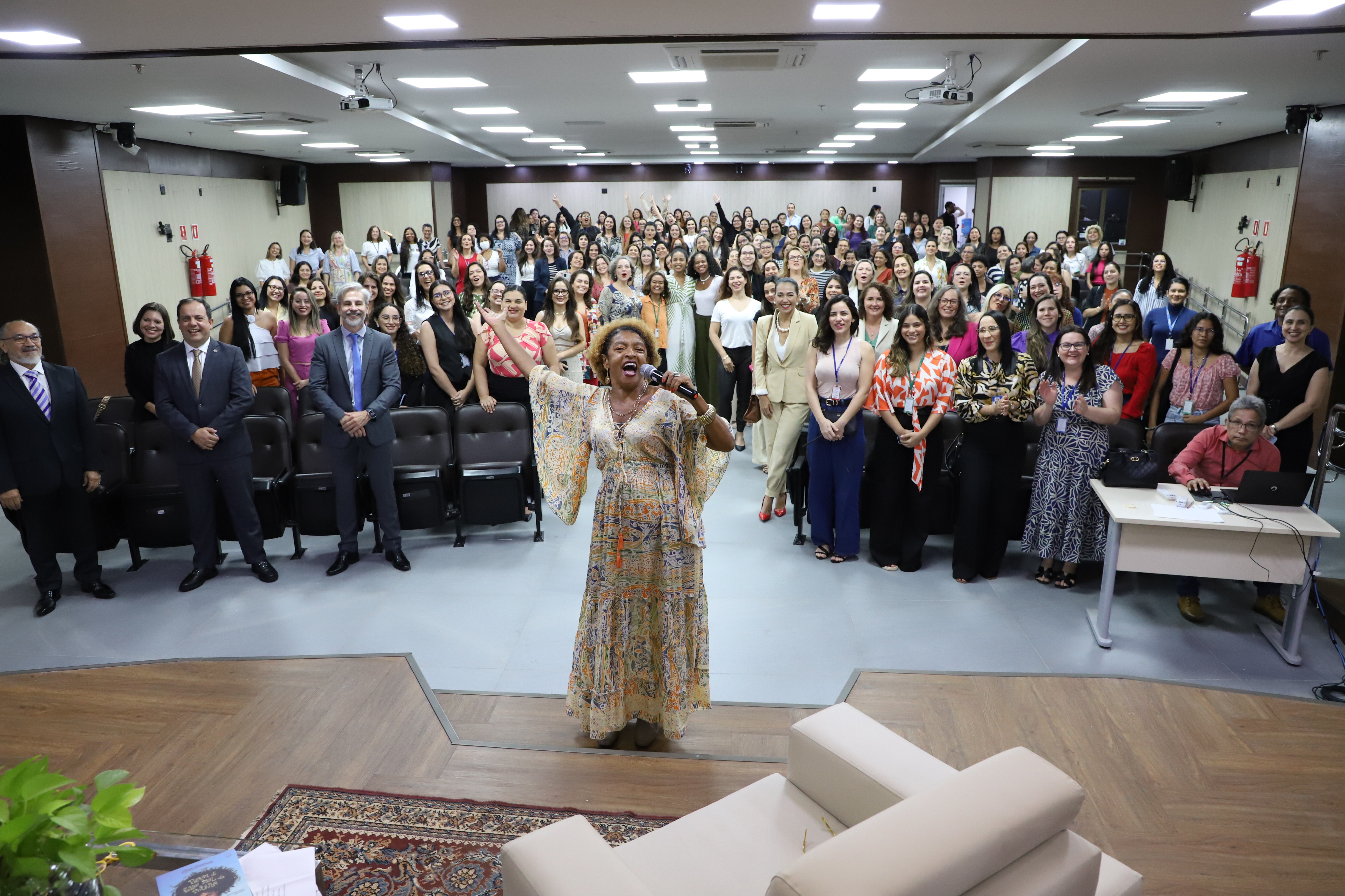 A multiartista deu exemplos à plateia, majoritariamente composta por mulheres, de como enfrentar situações de preconceito e assédio utilizando a força da palavra.