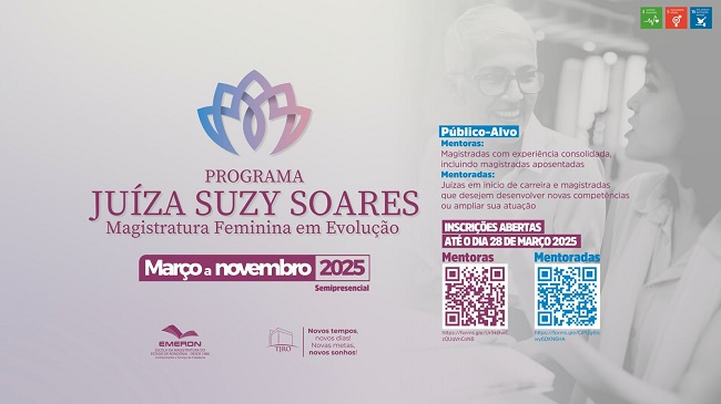 As inscrições para o Programa Juíza Suzy Soares: Magistratura Feminina em Evolução estão oficialmente abertas a partir de hoje.