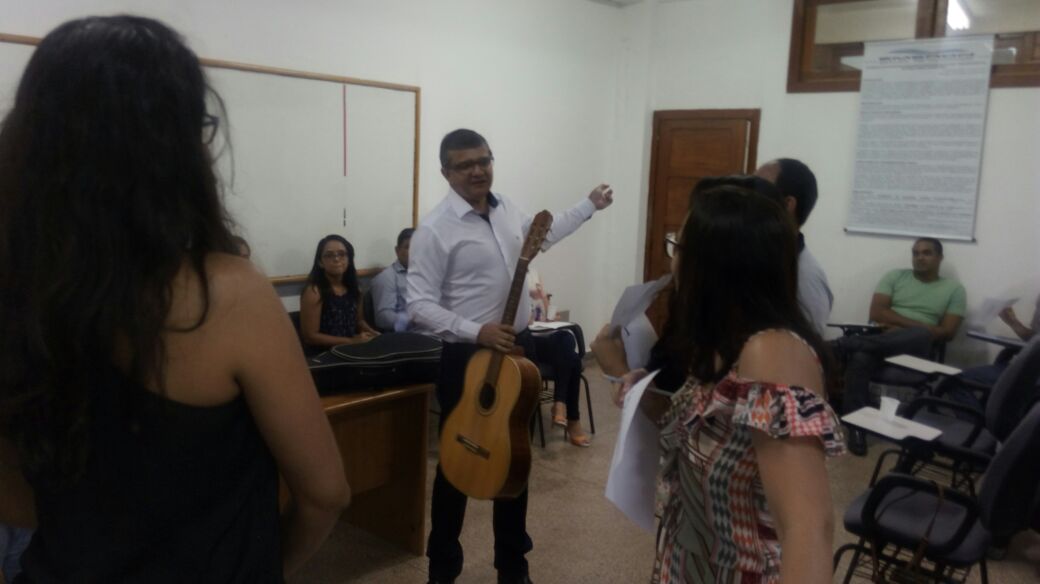 Os discentes foram divididos em grupos que receberam algumas tarefas. Um dos grupos deveria cantar a música “Anunciação”, de Alceu Valença, e a partir da percepção dos obstáculos em cantar, descrever quais as dificuldades de cursar a especialização. Em outro grupo, os participantes deveriam produzir objetos, que tivessem significado, com uma folha de papel. Avião e espelho foram algumas das peças construídas. “Demorei a entrar na faculdade, tentei outros cursos, mas não me vi naquelas carreiras pois não tinha um mentor, alguém em que me espelhar. Hoje eu sou um espelho para minha família por ter me formado”, afirmou uma das alunas.