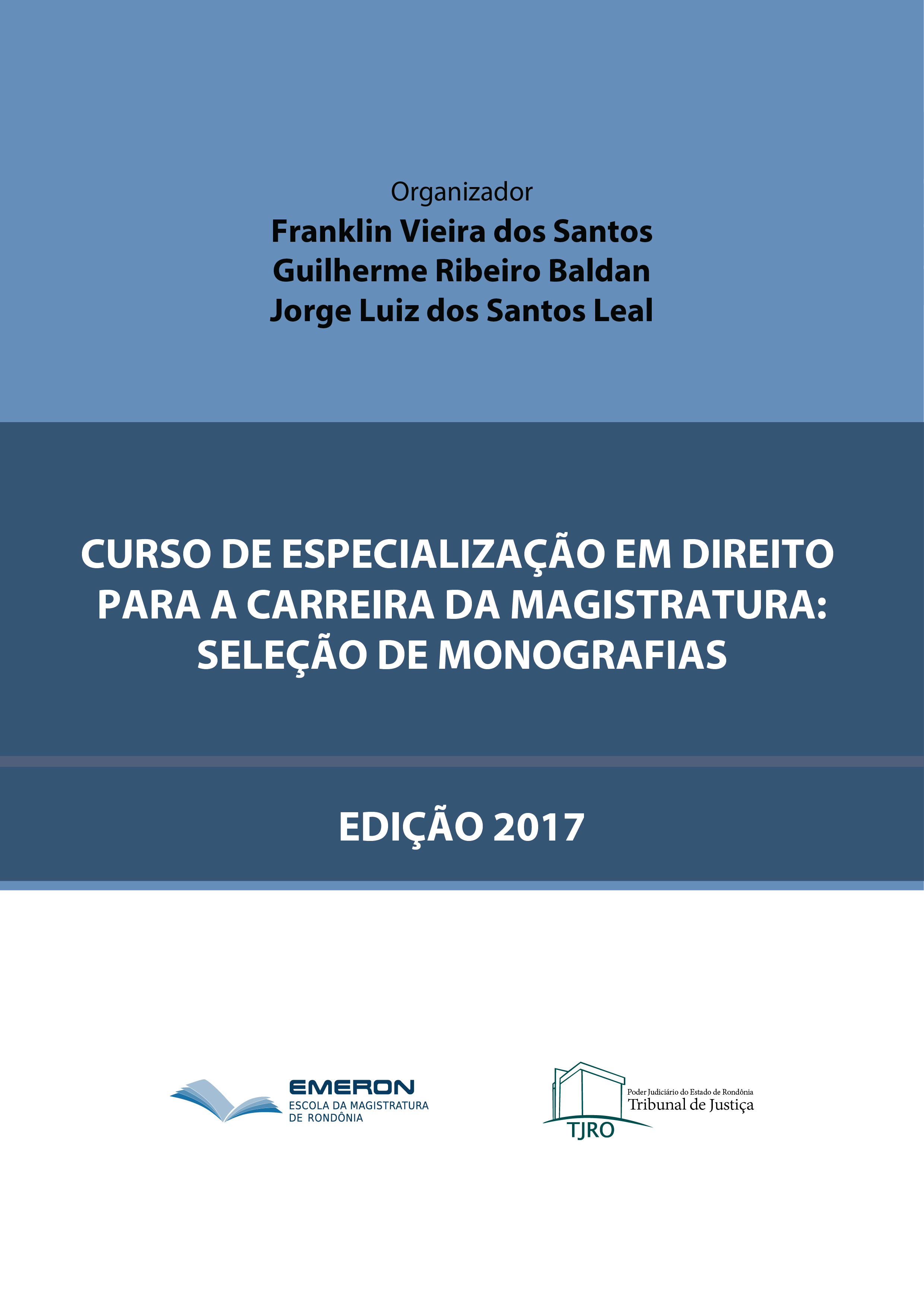 A Escola da Magistratura de Rondônia está lançando seu primeiro e-book com compilação de artigos produzidos pelos alunos da Especialização em Direito para a Carreira da Magistratura como trabalho de conclusão de curso. A publicação visa prestigiar o ambiente acadêmico no Estado de Rondônia, incentivando outros pós-graduandos do curso e até mesmo a comunidade científica a empreender esforços para a produção científica abordando temas caros à comunidade mais próxima.
