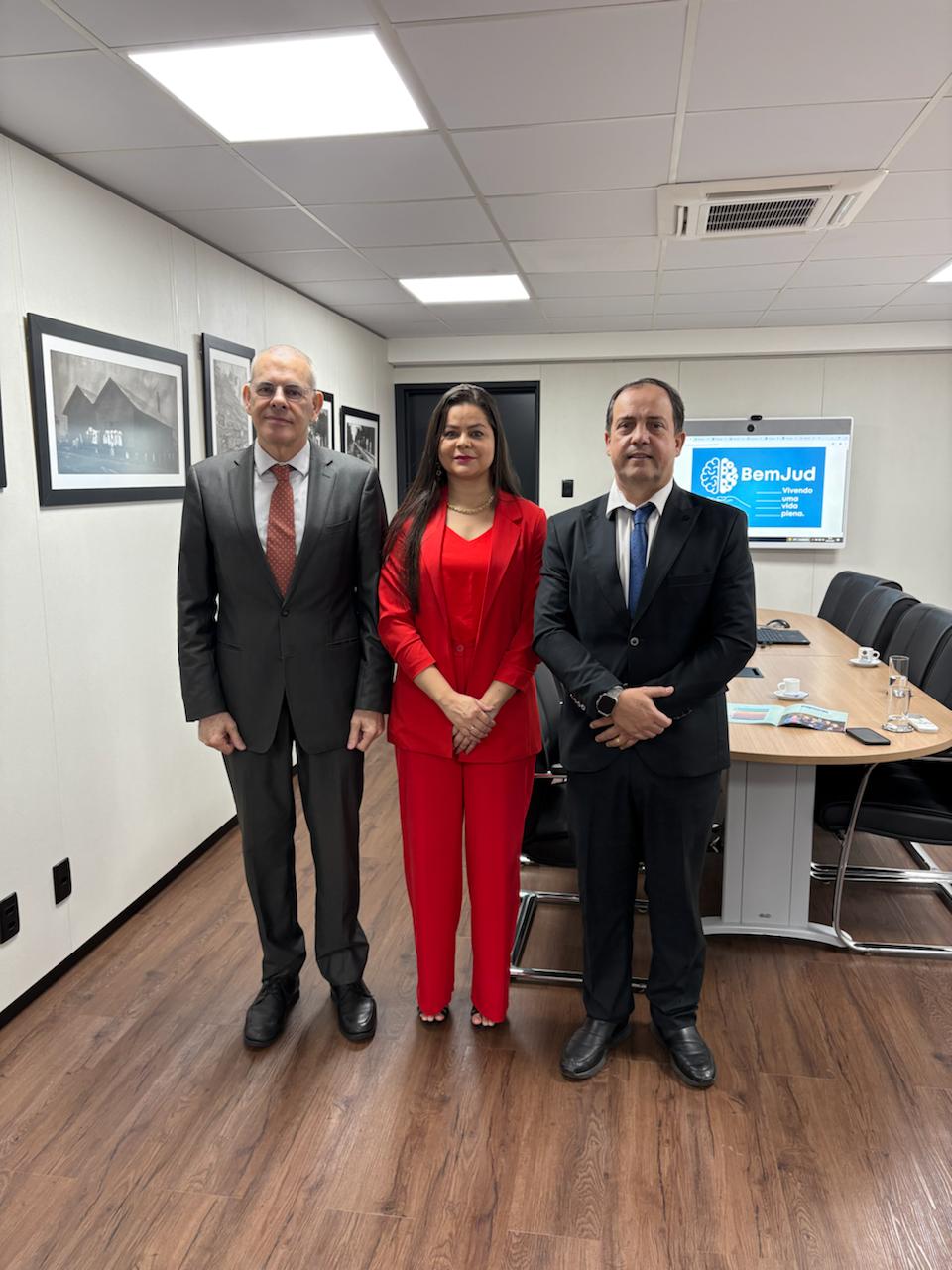 O projeto que reafirma o cuidado com as pessoas e a promoção de um ambiente de trabalho mais saudável está concorrendo ao Prêmio Innovare 2025, uma das principais premiações da Justiça brasileira. O Programa BemJud foi apresentado nesta quinta-feira (24) à consultora do prêmio, Rosana Silva, pelos dirigentes da Escola da Magistratura do Estado de Rondônia (Emeron), instituição responsável pela criação da iniciativa, em parceria com o Tribunal de Justiça de Rondônia (TJRO).
