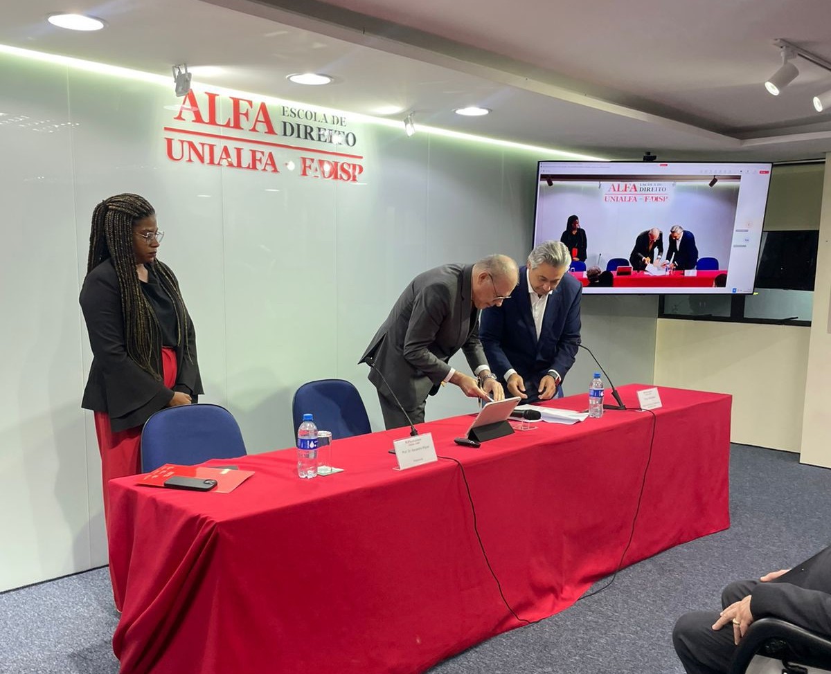 O documento foi assinado na última semana, em São Paulo, pelo Diretor da Emeron, desembargador Alexandre Miguel, e pelo Diretor Superintendente da Fadisp e Reitor do Centro Universitário Alves Faria (UNIALFA), Nelson de Carvalho Filho.