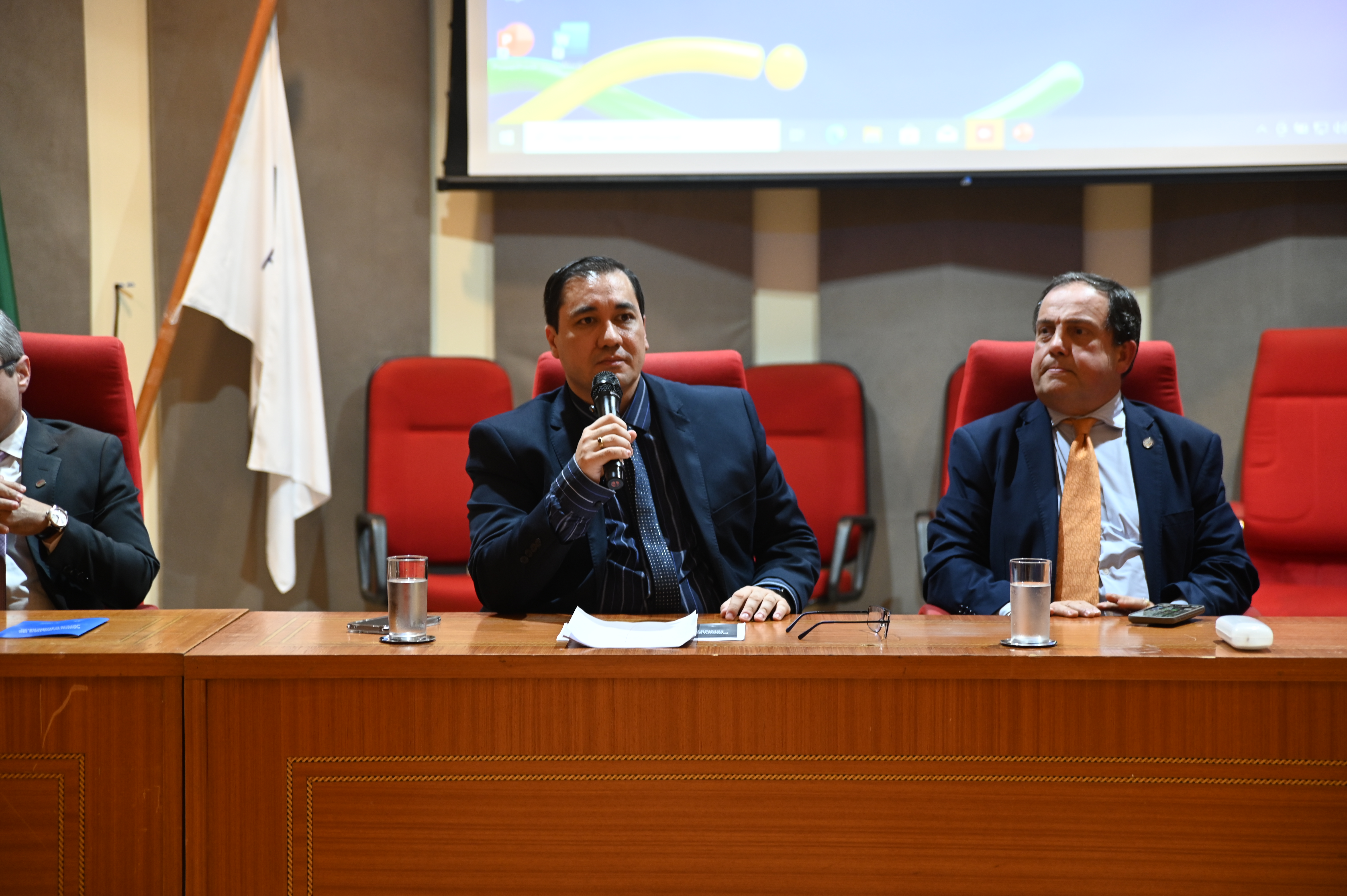 Pelo TJRO, falaram os juízes Johnny Gustavo Clemes, Vice-Diretor da Emeron, e o juiz Renan Kirihata, membro do Comitê de Governança em IA do Tribunal. Também esteve na apresentação do manual o desembargador Hiram Marques, que é oriundo da advocacia.