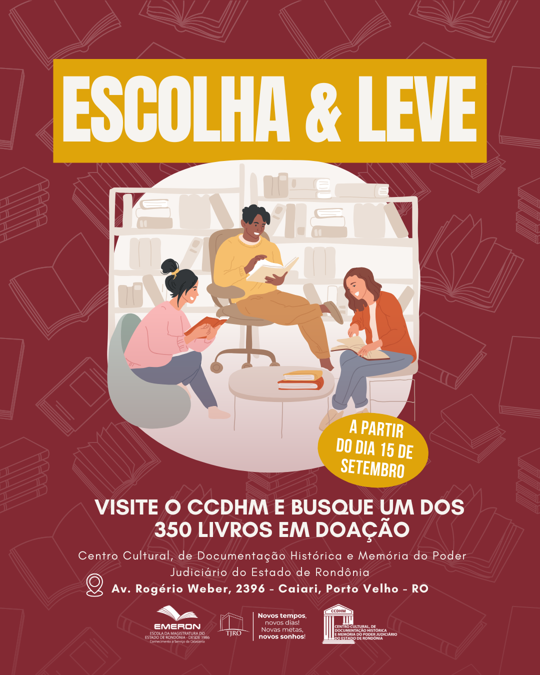 O Centro Cultural, de Documentação Histórica e Memória do Judiciário de Rondônia (CCDHM), vinculado a Escola da Magistratura do Estado de Rondônia (Emeron), realizará a doação de mais de 350 livros aos visitantes durante o mês de setembro.