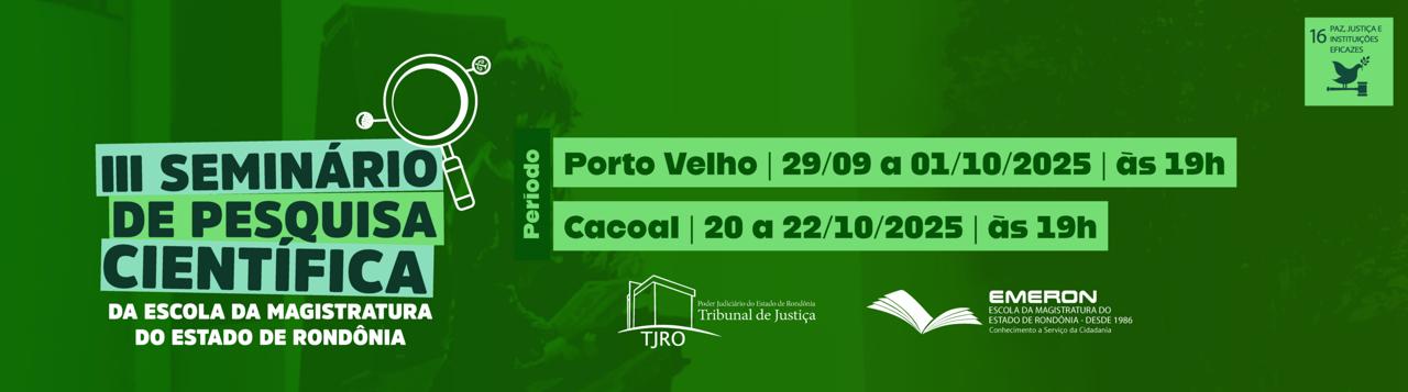 A Escola da Magistratura do Estado de Rondônia (Emeron) abriu as inscrições para apresentação de trabalhos no III Seminário de Pesquisa Científica da Especialização em Direito para a Carreira da Magistratura (EDCM).