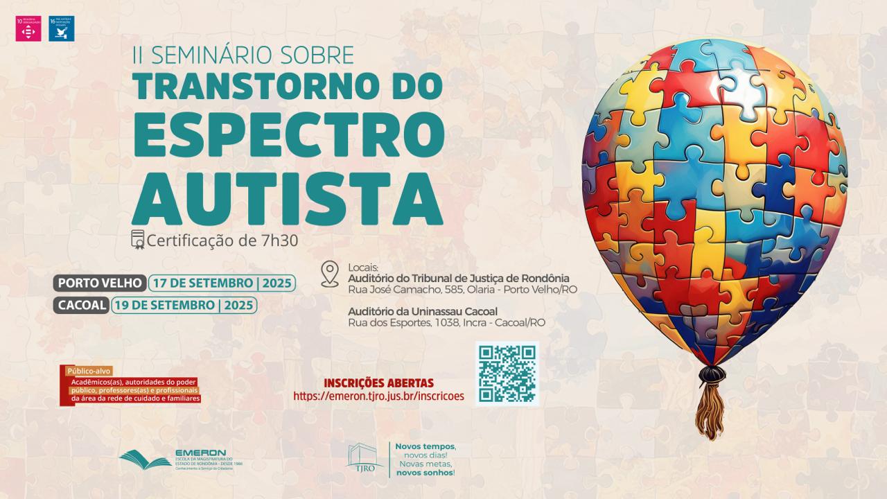 A Escola da Magistratura do Estado de Rondônia (Emeron) realiza nesta semana o “II Seminário sobre Transtorno do Espectro Autista (TEA)”. A programação é aberta ao público em geral e contará com palestrantes renomados na área de inclusão.
