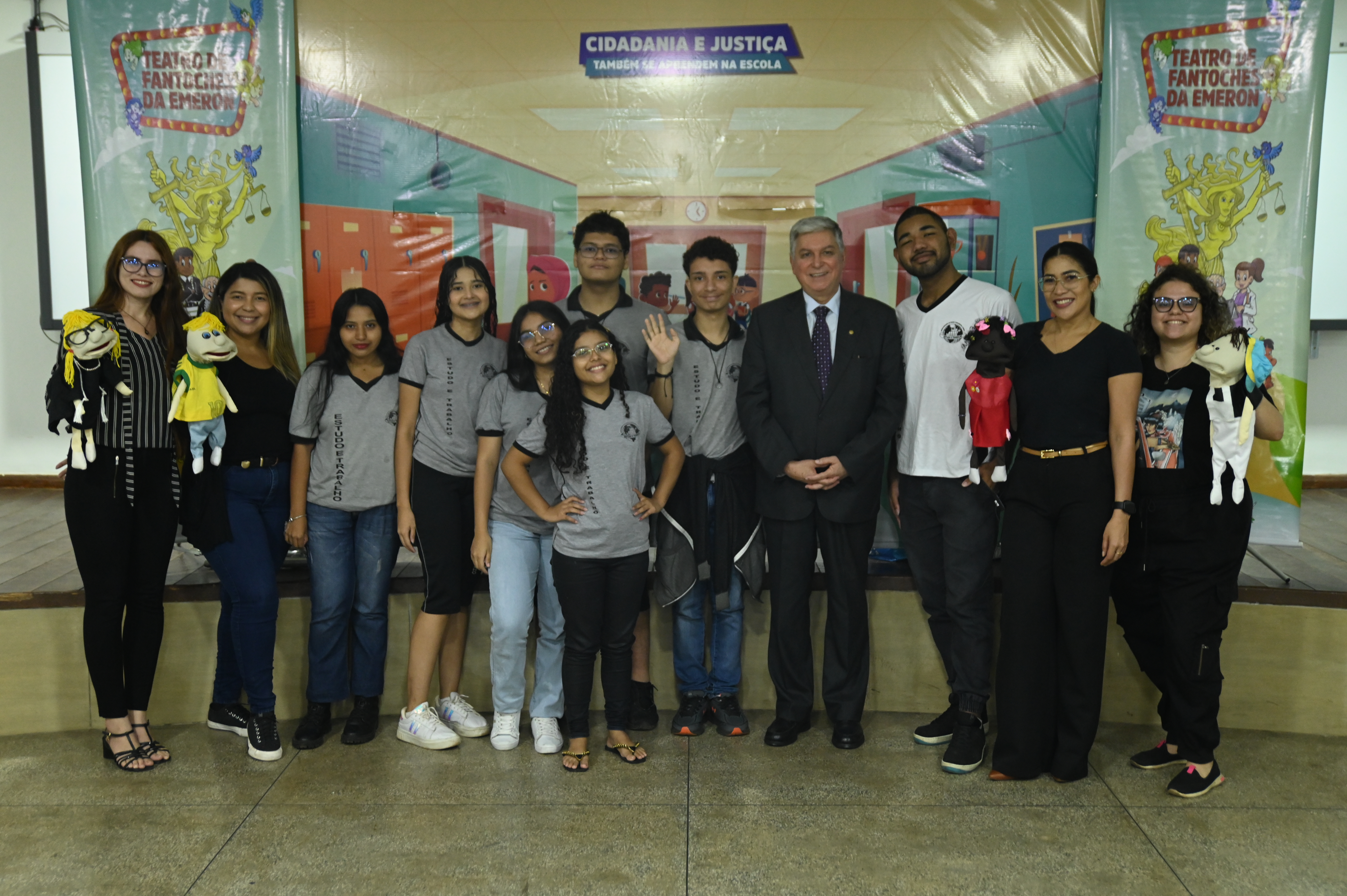 O projeto “Cidadania e Justiça Também se Aprendem na Escola”, iniciativa de extensão da Especialização em Direito para a Carreira da Magistratura (EDCM), da Emeron, realizou na última quarta-feira (8) sua primeira apresentação em uma instituição de ensino neste ano. A atividade ocorreu na Escola Estadual Estudo e Trabalho, levando o Teatro de Fantoches que transforma o aprendizado sobre direitos e deveres em uma experiência divertida e participativa.