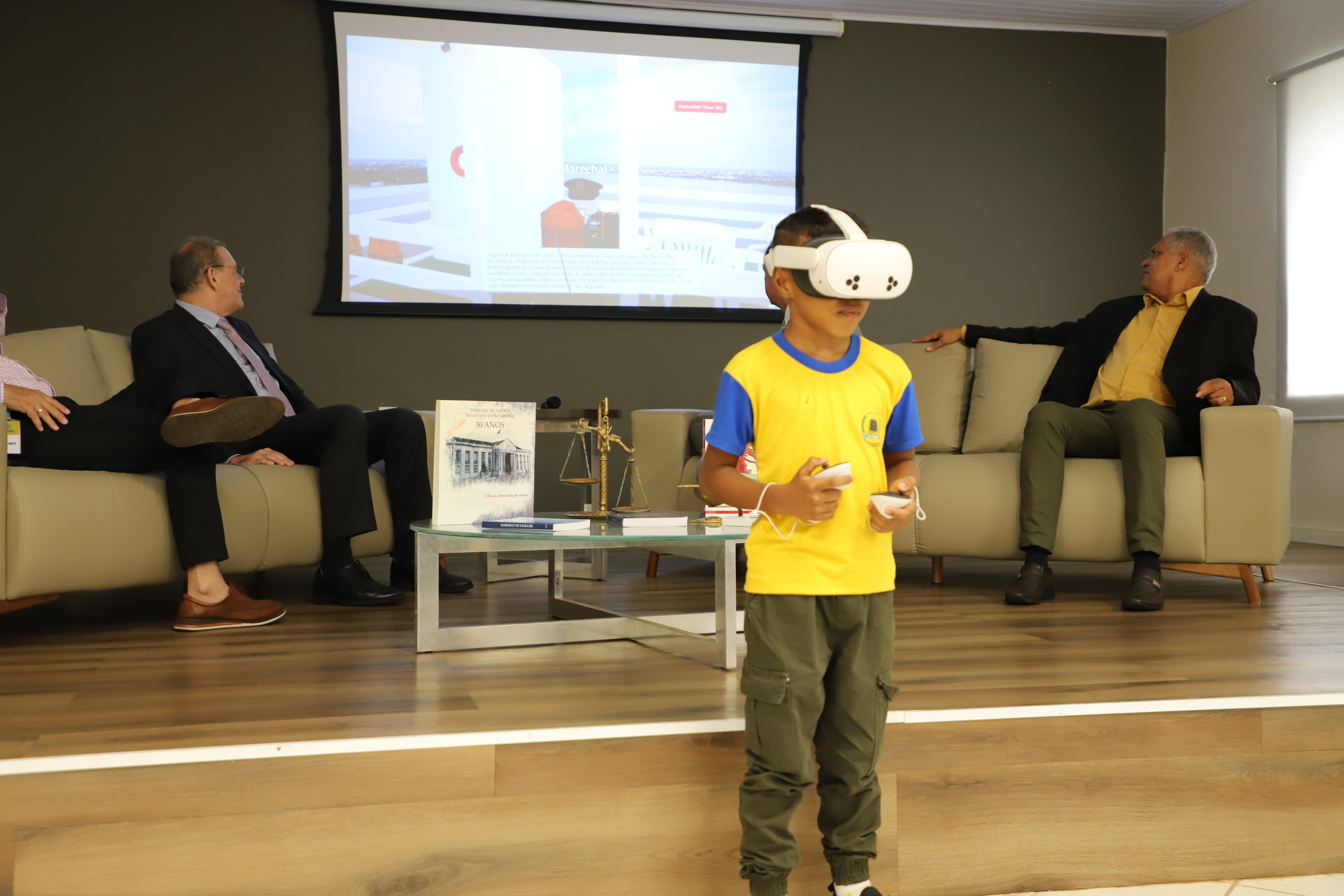 Logo após a solenidade, os alunos foram os primeiros a experimentar o MemórIAVerso, jogo interativo desenvolvido especialmente para aproximar crianças e jovens da história do Judiciário rondoniense. No ambiente virtual, os participantes percorrem os espaços do Centro de Memória enquanto desbloqueiam conteúdos exclusivos sobre a criação e evolução do TJRO, aprendendo de forma lúdica e tecnológica.