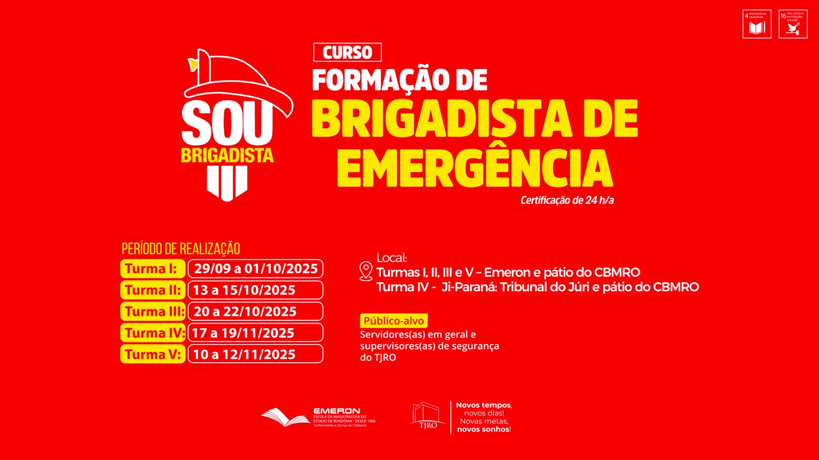 A Escola da Magistratura do Estado de Rondônia (Emeron) informa a lista de servidores(as) convocados(as) pela Divisão de Acompanhamento e Desenvolvimento de Carreiras (Diadec) a participar do curso “Formação de Brigadista de Emergência (Turma IV)”.