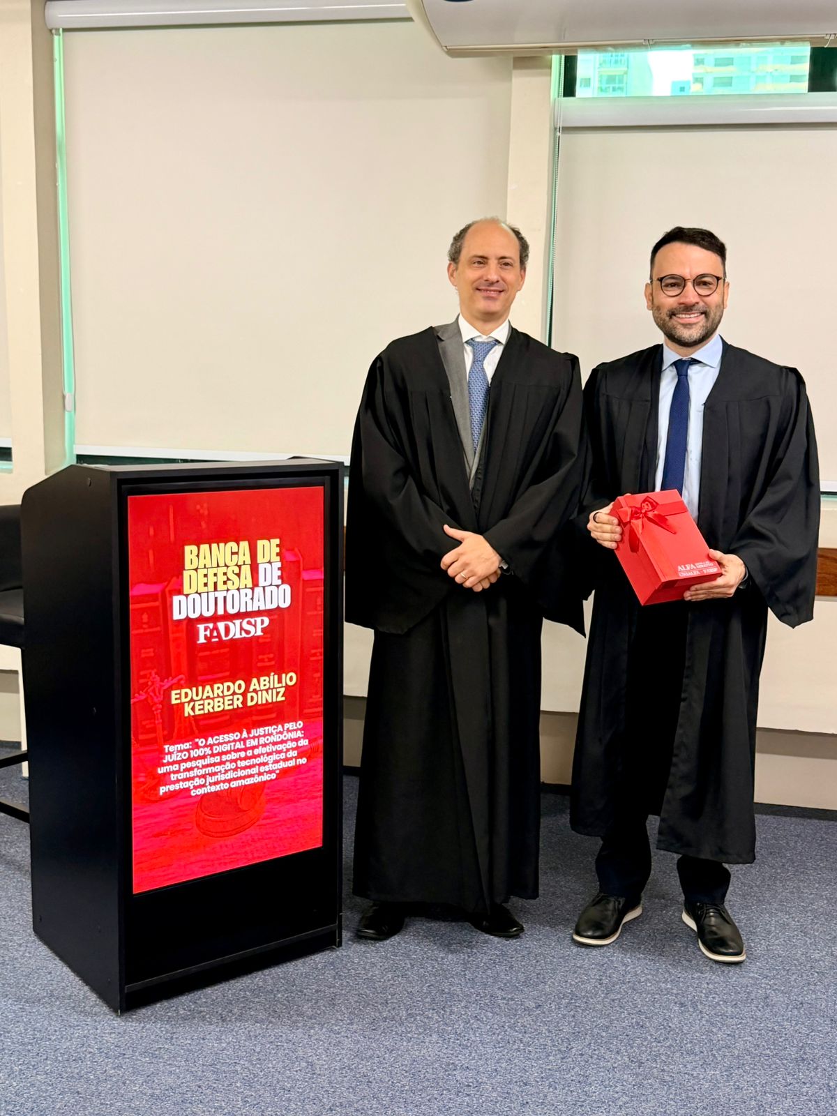 O juiz e professor da Especialização em Direito para a Carreira da Magistratura (EDCM) da Escola da Magistratura do Estado de Rondônia (Emeron), Eduardo Abílio Kerber Diniz, foi aprovado após defender sua tese de doutorado na Fadisp, em São Paulo. O magistrado também é coordenador do Núcleo de Pesquisa e Publicação (Nupep) do Centro de Pesquisa, Inovação e Pós-Graduação (CEPEP) da Emeron.