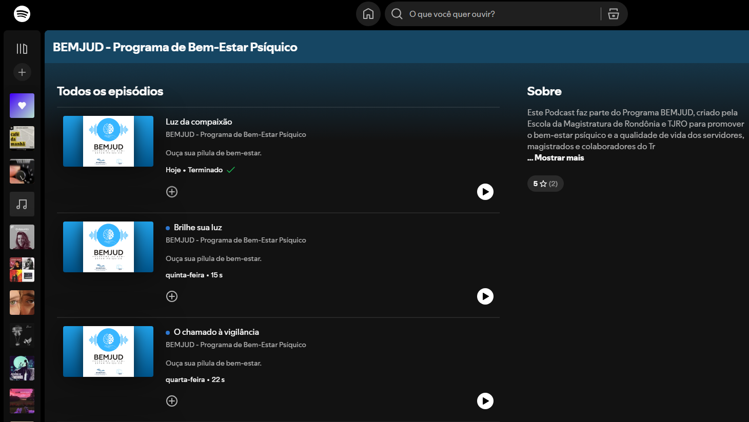 Ainda no final de 2024, uma nova opção foi lançada: as pílulas de bem-estar no Spotify. Diariamente, são publicados áudios curtos com reflexões e dicas para uma vida mais saudável. Ouça agora.