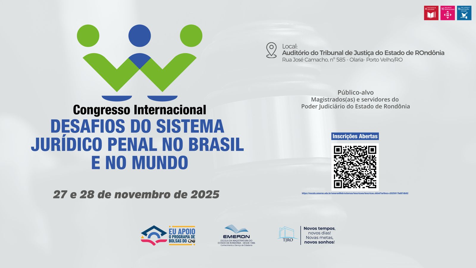 A Escola da Magistratura de Rondônia (Emeron) sediará, nesta semana, o Congresso Internacional: Desafios do Sistema Jurídico Penal no Brasil e no Mundo. Serão dois dias de intensa programação que reúne Ministro do STJ, autoridades e especialistas nacionais e internacionais com palestras, painéis e lançamentos de livros.