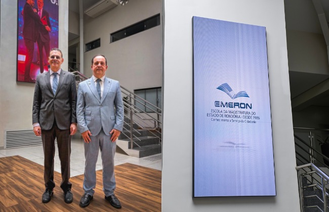 A Escola da Magistratura do Estado de Rondônia (Emeron) deu mais um passo na modernização institucional ao implementar novas soluções de comunicação visual e colaboração remota. Entre as tecnologias, destaca-se a instalação de um moderno sistema de ledwall no hall de entrada da instituição, ferramenta que amplia os recursos de comunicação visual para a recepção do público e a divulgação de ações formativas e institucionais.