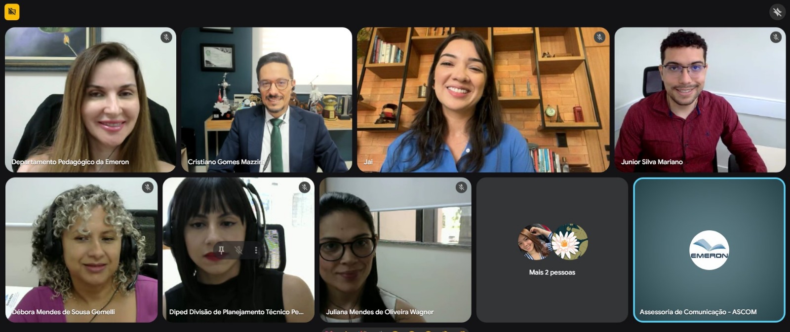 Dando início ao cronograma de atividades acadêmicas de 2026, a Direção da Escola da Magistratura de Rondônia (Emeron) promoveu, nesta segunda-feira (12), uma reunião de alinhamento estratégico para o oficina de Planejamento Pedagógico do curso de Especialização em Direito para a Carreira da Magistratura (EDCM). O encontro, realizado de forma virtual, reuniu a nova gestão da Escola e a equipe técnica para definir as diretrizes da oficina pedagógica que será ministrada aos docentes da instituição.