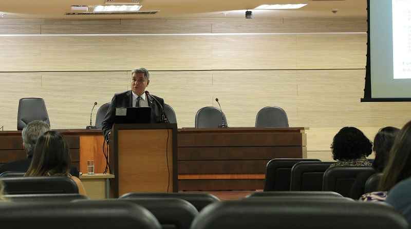 Finalizada a palestra, o Diretor da Emeron fez uma apresentação da Escola desde sua fundação, passando pelas conquistas que tornaram possível alcançar o presente patamar de Escola Judicial e de Instituição de Ensino Superior. Também foram apresentados os próximos projetos da Escola Judicial, que incluem a consolidação do Centro de Pesquisa e Publicação, que será imprescindível para a produção de conhecimento voltado ao aprimoramento judicial; o início da primeira pós-graduação lato sensu em Organizações Criminosas, realizada em convênio com o Ministério Público Estadual e o Tribunal de Contas; e a implantação do Doutorado Profissionalizante.
