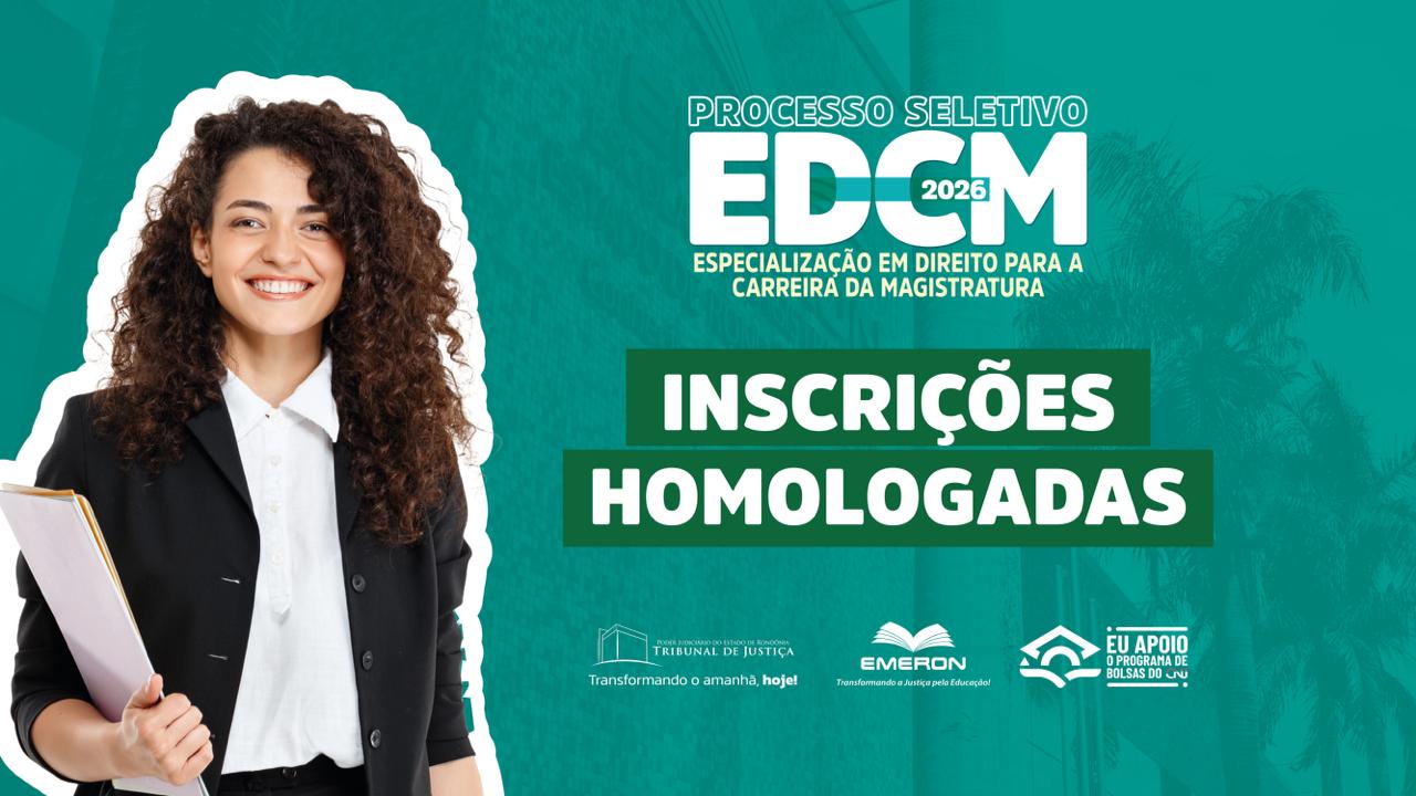 A Escola da Magistratura do Estado de Rondônia (Emeron), em atenção em conformidade com o Edital N° 19/2025, divulga a lista final de inscrições homologadas para o Processo Seletivo 2026 da Especialização em Direito para a Carreira da Magistratura (EDCM), após os recursos à heteroidentificação.
