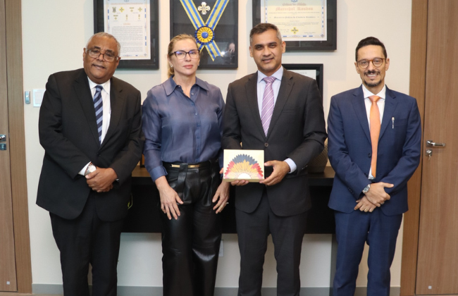 Na manhã desta quarta-feira (21), a Direção da Escola da Magistratura de Rondônia (Emeron) realizou uma visita institucional ao Ministério Público do Estado de Rondônia (MPRO), com o objetivo de estreitar os laços entre as instituições e alinhar ações de cooperação acadêmica para o biênio. O diretor da Emeron, desembargador Gilberto Barbosa, e o vice-diretor, juiz Cristiano Mazzini, foram recebidos pelo Procurador-Geral de Justiça, Alexandre Jésus, e pela Diretora do Centro de Atividades Judiciais da Escola Superior do MPRO (EMPRO), Edna Capelli.