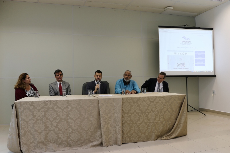 Em nome do Diretor da Emeron, Desembargador Marcos Alaor Diniz Grangeia, o vice-diretor da Emeron, Guilherme Ribeiro Baldan, lembrou que a realização de cursos de mestrado pela Escola é um projeto almejado há vários anos e que só foi possível graças aos esforços das gestões anteriores em reconhecer a Emeron como instituição de ensino superior e buscar parcerias que tornassem viável a realização de pós-graduações desta natureza. Baldan afirmou ainda que a realização de projetos como este estimula o desejo por outras conquistas, como a implantação do doutorado profissional.