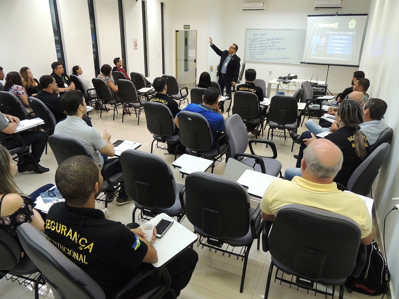 O curso foi ministrado por Fabiano Sérgio Paiva Dias de Sá, da Coordenador da Coordenadoria de Segurança Patrimonial e Humana (COSEPH), e pelo Ten. Cel. PM Valdemir Carlos de Góes, da Assessoria Militar do TJRO, e de acordo com Fabiano, tem como principal objetivo oferecer aos participantes uma visão holística da Política de Segurança Institucional, de forma que eles possam, em suas atividades diárias, cumprir os procedimentos e as orientações determinadas no documento.