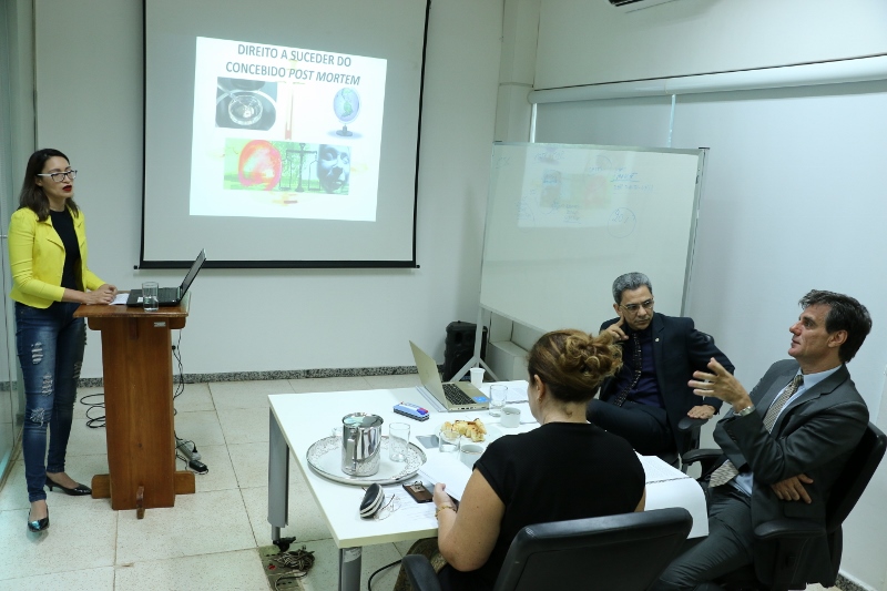 No dia seguinte, “Reprodução Humana Artificial Post Mortem e Seus Reflexos no Direito de Sucessões” foi o tema apresentado por Cleisiane Gomes dos Santos Pereira, e discutiu as recentes normativas e as tentativas de preenchimento do vácuo legislativo sobre o tema. A aluna teve como banca os professores Edenir Albuquerque da Rosa, Úrsula Gonçalves Theodoro de Faria Souza e Guilherme Ribeiro Baldan. Ainda no dia 20, Phamella Thays Rezende Belini defendeu a “Possibilidade de Usucapião de Bem Público em Razão da Função Social e do Direito de Moradia Garantidos pela Constituição Federal de 1988” frente à banca formada pelos juízes Edenir Albuquerque da Rosa, Úrsula Gonçalves e Rinaldo Forti da Silva.