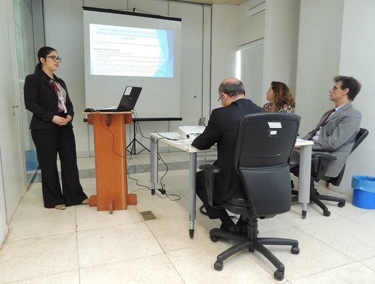 Finalizando a semana de apresentações, na tarde de segunda-feira, 26, duas bancas foram promovidas simultaneamente em Porto Velho. Larissa Rapozo da Silva Soares defendeu a monografia “A Transação Aplicada às Execuções Fiscais e Sua Eficácia no Adimplemento do Crédito Público”, enquanto Juliana Lima Braga discorreu sobre “A Conciliação e a Mediação no Novo Código de Processo Civil”. As produções das pós-graduandas foram analisadas, respectivamente, pelos juízes Fabíola Cristina Inocêncio, Edenir Sebastião Albuquerque da Rosa e Johnny Gustavo Clemes e Jorge Luiz dos Santos Leal, Guilherme Ribeiro Baldan e Úrsula Gonçalves Theodoro de Faria Souza.
