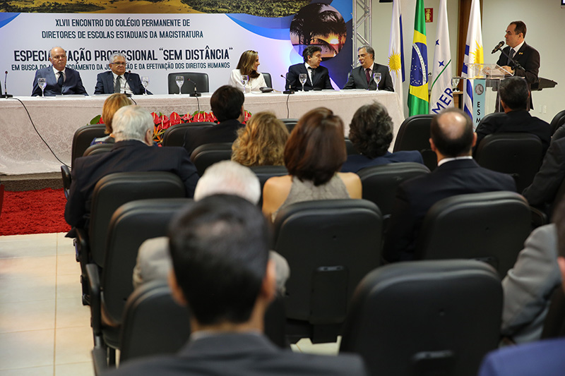 Com o tema "Especialização profissional ‘sem distância’ - em busca do aperfeiçoamento da jurisdição e da efetivação dos direitos humanos", foi aberto na noite desta quinta-feira (05/04), na sede do Poder Judiciário do Tocantins, em Palmas, o XLVII Encontro do Colégio Permanente de Diretores de Escolas Estaduais da Magistratura (Copedem). O evento nacional segue até sábado (07/04).