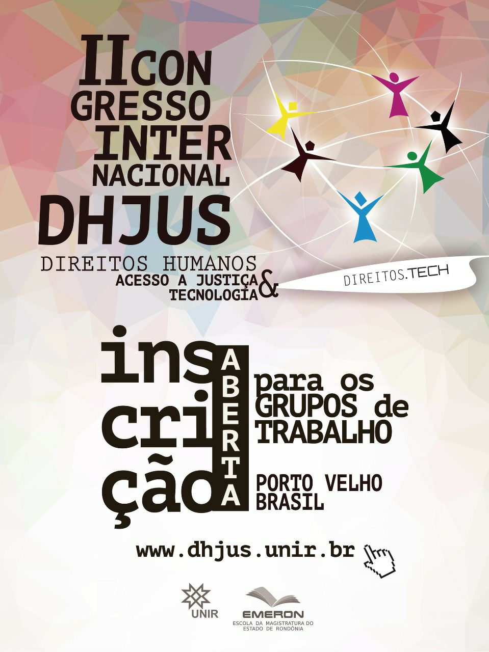 Estão abertas as inscrições para submissão de artigos que serão apresentados no II Congresso Internacional DHJUS - Direitos Humanos, Acesso à Justiça e Tecnologia - Direitos.TECH, a ser promovido pelo Mestrado Profissional Interdisciplinar em Direitos Humanos e Desenvolvimento da Justiça (DHJUS) no período de 08 a 10 de agosto de 2018, em Porto Velho.