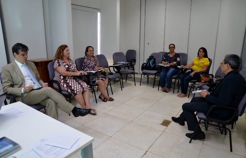 A Escola da Magistratura do Estado de Rondônia (Emeron) realizou, na última sexta-feira (27), uma mesa-redonda com as instituições de ensino público de Porto Velho atendidas nos três últimos anos pelo projeto Justiça na Escola, desenvolvido na Especialização em Direito para Carreira da Magistratura (EDCM). O encontro foi mediado pelos juízes coordenadores da ação, Edenir Albuquerque e Úrsula Gonçalves de Farias, e também teve a participação do vice-diretor da Emeron, juiz Guilherme Baldan, dos servidores Deisy Fernandes e Gustavo Sanfelici, e das pedagogas da Divisão de Planejamento Técnico-Pedagógico da Escola, Marciane Rossi e Danielly Rodrigues.