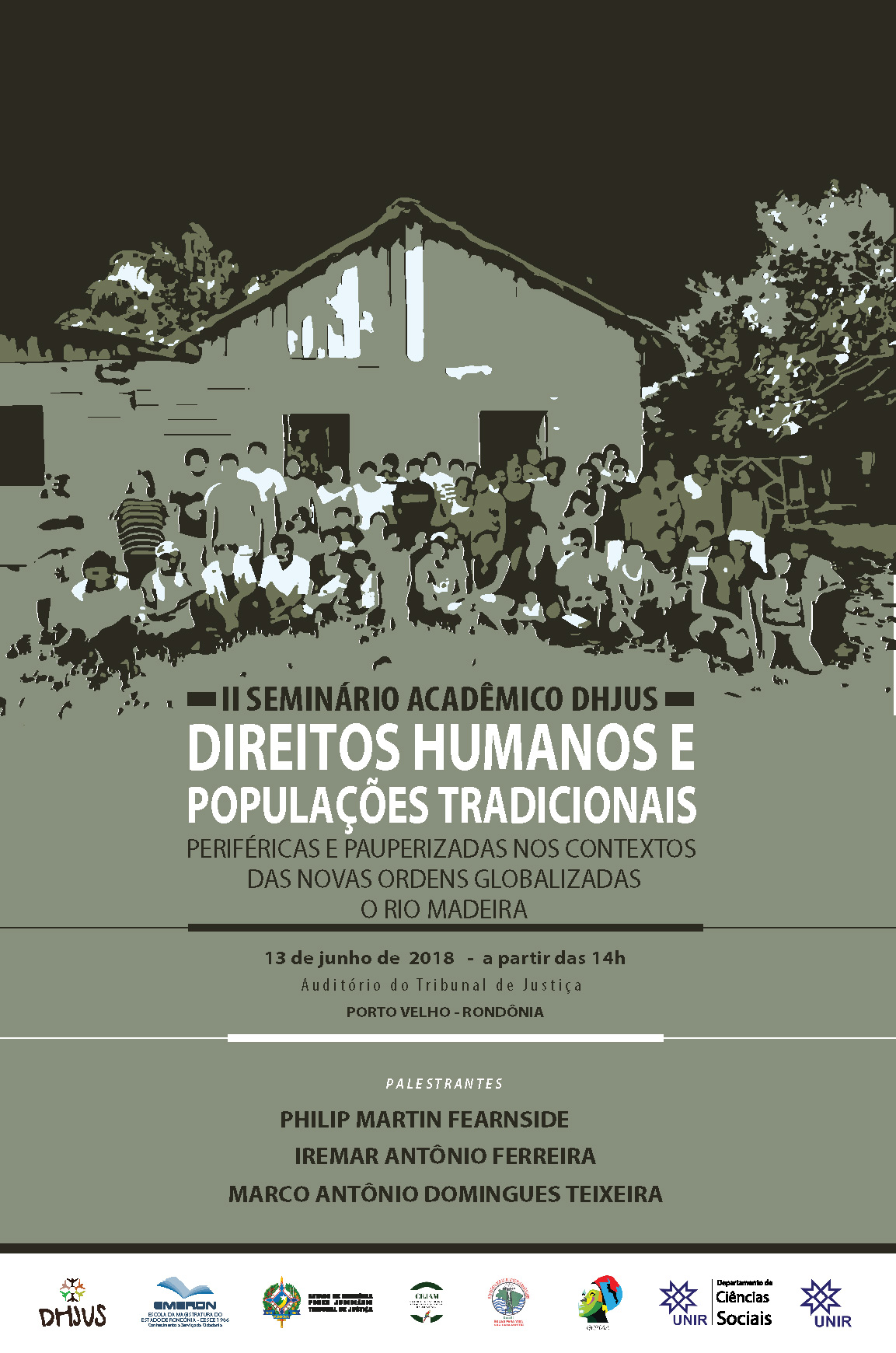 Estão abertas as inscrições para o seminário acadêmico “Direitos Humanos e populações tradicionais, periféricas e pauperizadas nos contextos das novas ordens globalizadas”, que será realizado pelo mestrado profissional interdisciplinar em Direitos Humanos e Desenvolvimento da Justiça (DHJUS), oferecido em parceria entre a Escola da Magistratura do Estado de Rondônia (Emeron) e a Universidade Federal de Rondônia (Unir), no próximo dia 13 de junho (quarta-feira), das 14h às 22h.