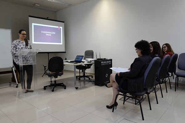 Além da orientadora, a banca de avaliação foi formada por Alessandra Moura, diretora da Divisão de Formação e Aperfeiçoamento da Emeron, e Maria de Oliveira, secretária executiva do Deped. A aluna foi aprovada e em breve receberá o título de Especialista em Docência e Metodologia do Ensino Superior e da Pesquisa.