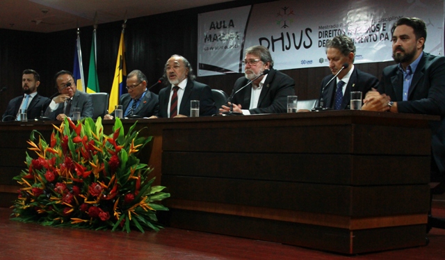 O palestrante e também coordenador do mestrado, professor doutor Rodolfo Jacarandá, destacou os vários campos eleitos como objeto pelos mestrandos, todos assuntos pertinentes com a realidade local, tais como regularização ambiental, demarcação fundiária, sistema prisional, violência contra a mulher, questões indígenas, temas que despertam a reflexão e, mais que isso, podem trazer soluções concretas para a sociedade.