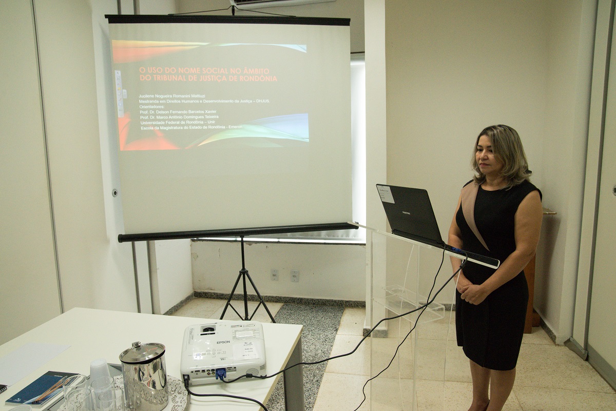 Na última segunda-feira (23), o mestrado profissional interdisciplinar em Direitos Humanos e Desenvolvimento da Justiça (DHJUS), oferecido pela Escola da Magistratura do Estado de Rondônia (Emeron) em parceria com a Universidade Federal de Rondônia (Unir), realizou sessão de qualificação de trabalho de conclusão de curso. Na sede da Emeron, a mestranda Jucilene Mattiuzi qualificou com sucesso sua dissertação, intitulada “O uso do nome social no âmbito do Tribunal de Justiça de Rondônia”.