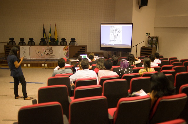 A programação começou ainda pela manhã com duas atividades. A primeira, a apresentação de artigos científicos dos mestrandos da segunda turma do Mestrado em Direitos Humanos e Desenvolvimento da Justiça (DHJUS), objeto do Convênio entre o Tribunal de Justiça de Rondônia e a Universidade Federal de Rondônia (Unir). Simultaneamente, no auditório do Ministério Público do Trabalho, um grupo de representantes de movimentos sociais, convidados pela Coordenação do Congresso, participou do Workshop “Fotografia Popular”, com as ministrantes Maria Cláudia Ferreira da Silva (UFRJ) e Adriana Medeiros (EFPFM).